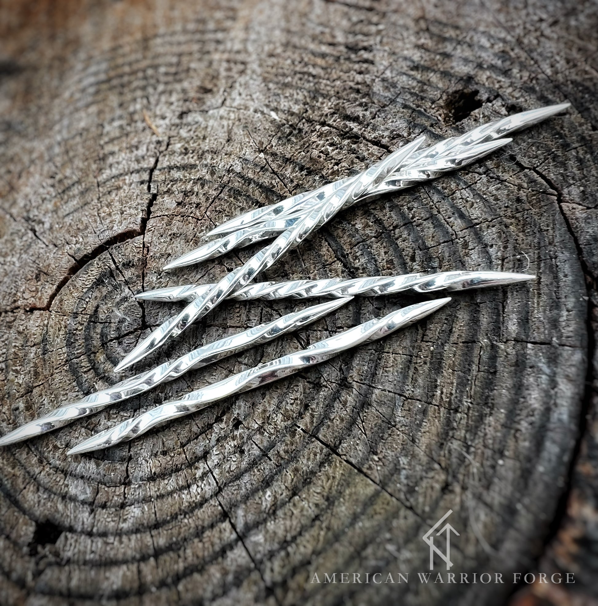 These hand-crafted sterling silver cowboy toothpicks, inspired by the rugged charm of the West, are the perfect blend of elegance and functionality. Just like my original and reverse twist copper models, these toothpicks are crafted with precision and care, now in pure sterling silver for an upgraded, polished look. Each 2.5” toothpick is meticulously twisted and work-hardened to maintain its shape, ensuring durability. Whether you’re at a rodeo, country fair, or just want to add a touch of western flair to your outfit, these polished toothpicks are the ideal accessory for your cowboy hat. Embrace the spirit of the cowboy with these quality sterling silver toothpicks, a symbol of tradition and craftsmanship.