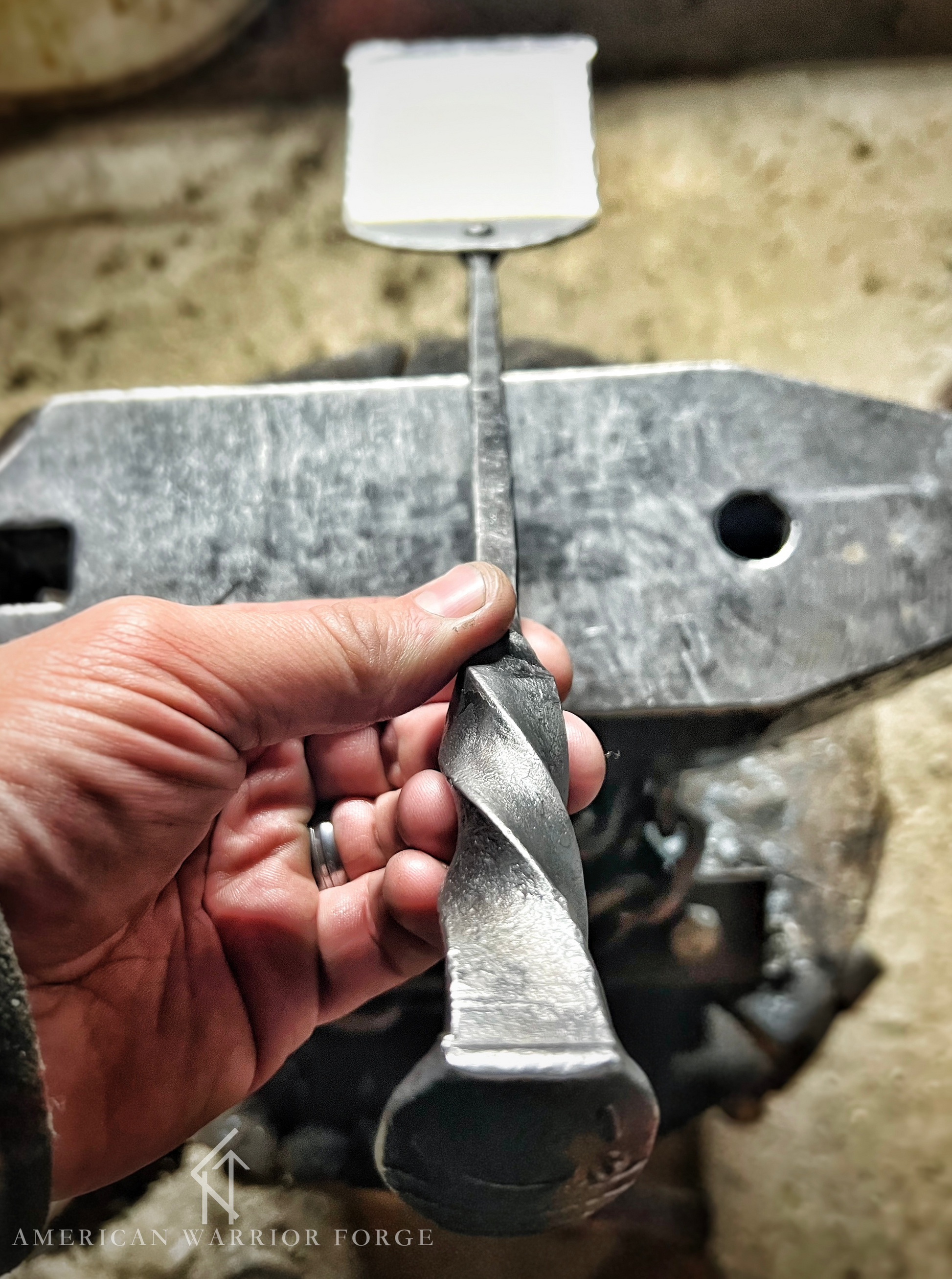 Each spatula handle is hand forged from a rail road spike. Then a mild steel plate is cold forged and hand riveted to the handle to make the business end functional. A protective and food safe beeswax finish is applied before shipping. Treat it like cast iron. Hand wash, dry thoroughly and wipe down with a good safe oil and you’re all set!