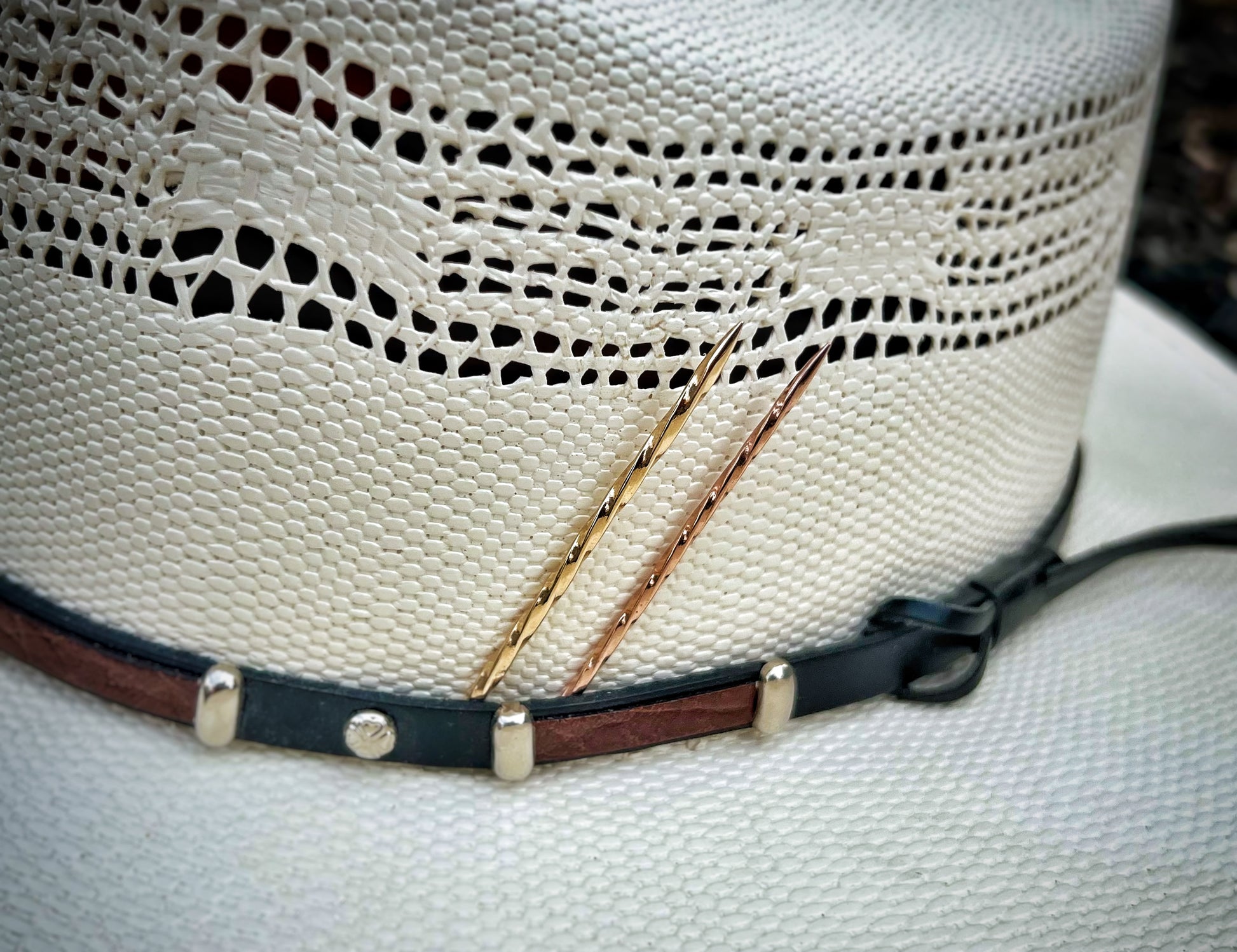 These cowboy toothpicks are made from 14k Gold and 14k Rose Gold. Each one is meticulously hand-crafted, buffed, and polished to a beautiful shine. Step up your hat jewelry game and add a little bling to your band with one of these gorgeous quality pieces.