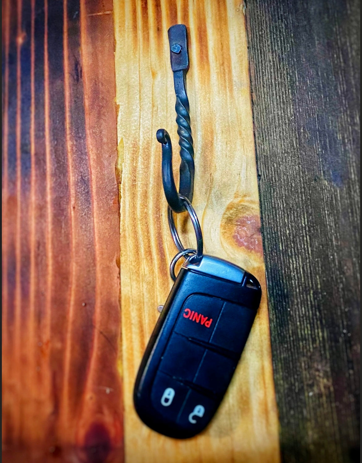 These “J” hooks are hand forged form 1/4” round bar mild steel. They feature a decorative twist as well as a tapered hook ending in an outward curl. The hooks are finished with a protective paste wax finish helping to prevent corrosion. Each hooks is approximately 3.5” - 4" tall. They are perfect for hanging keys, coats, caps or anything else your little heart desires. Bring some old world, handmade charm to your home with this addition. **Mounting hardware not included