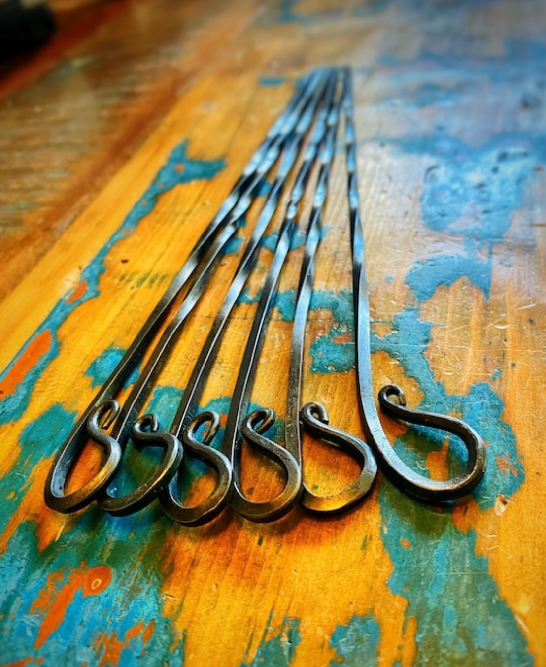 Bring some old-world charm to your grilling game with these unique hand forged steel skewers!